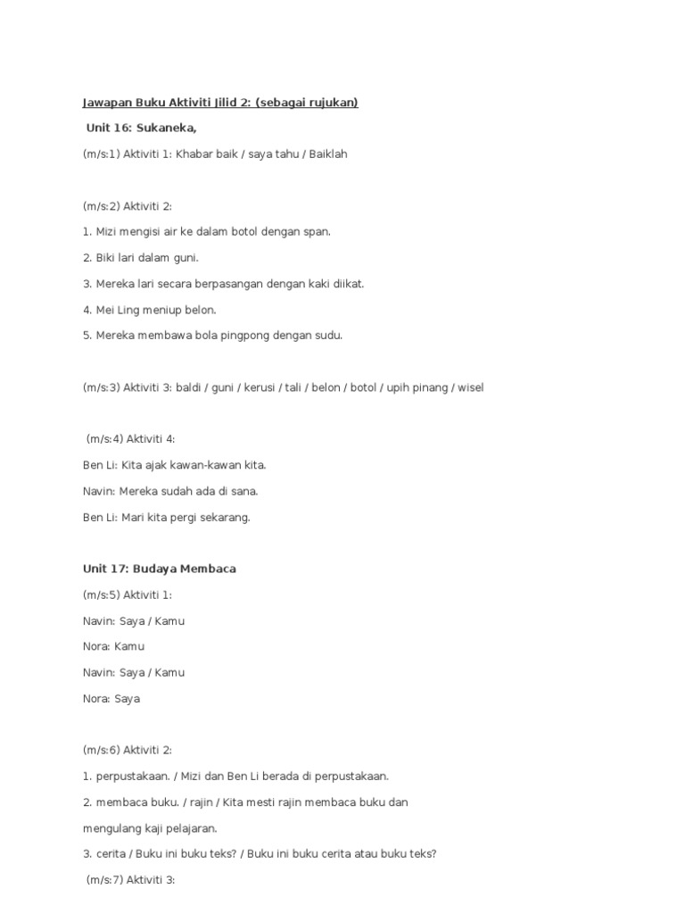 Jawapan Buku Aktiviti Tahun Dua Jilid 2 Pdf